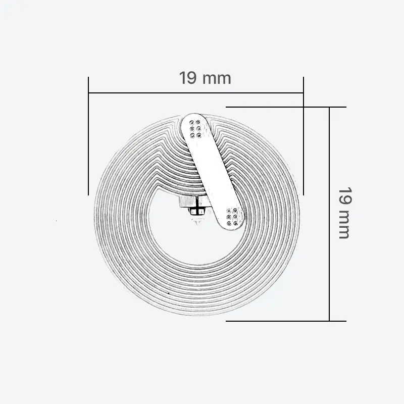 The kit comes in a circular 19 mm NFC/RFID sticker (label) form factor, designed for easy attachment to packaging or product surfaces. Operating at 13.56 MHz and compliant with ISO/IEC 14443 Type A, this durable design ensures reliable NFC performance across a wide range of applications.